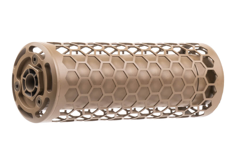 Sig Sauer SURG556, Suppressor, 556NATO, Inconel, High Temperature Cerakote Finish, Flat Dark Earth, Integrated Flash Hider, Direct Thread, Includes Detachable Titanium Hexagonal Heat Shield SURG556